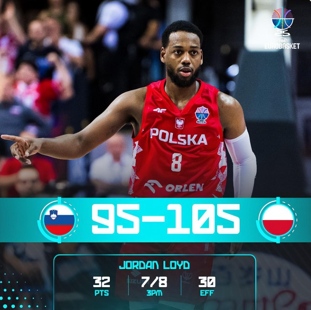 三年后波尼特卡又带领波兰105-95击败斯洛文尼亚,这场比赛波尼特卡不是第一功臣而是二当家,他全场比赛13中8拿到23分7篮板,因为第一功臣是波兰归化乔丹-洛伊德。